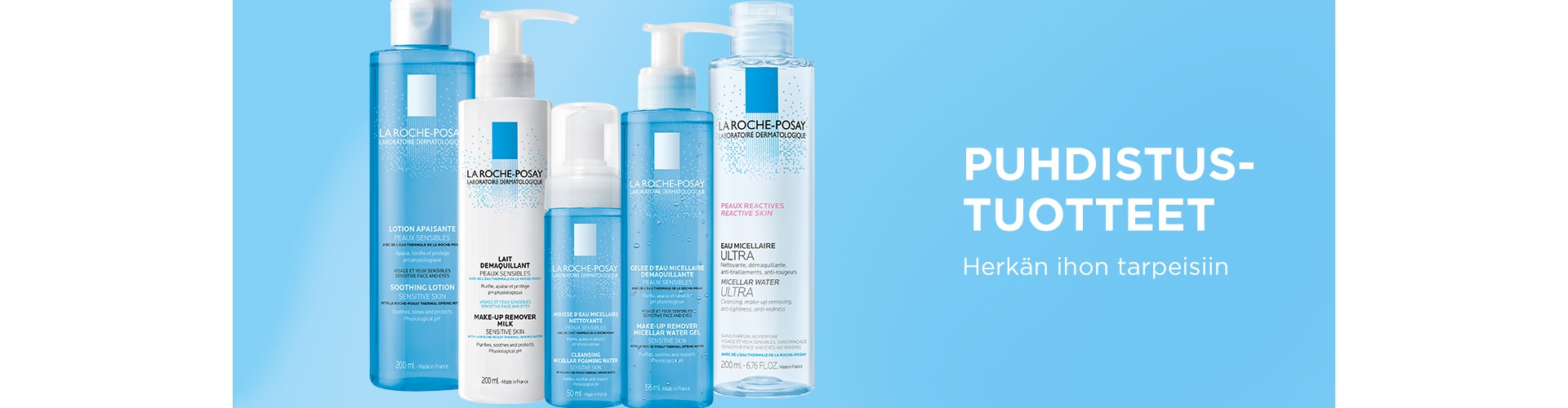 Puhdistustuotteet kaikille ihotyypeille, myös herkälle iholle.